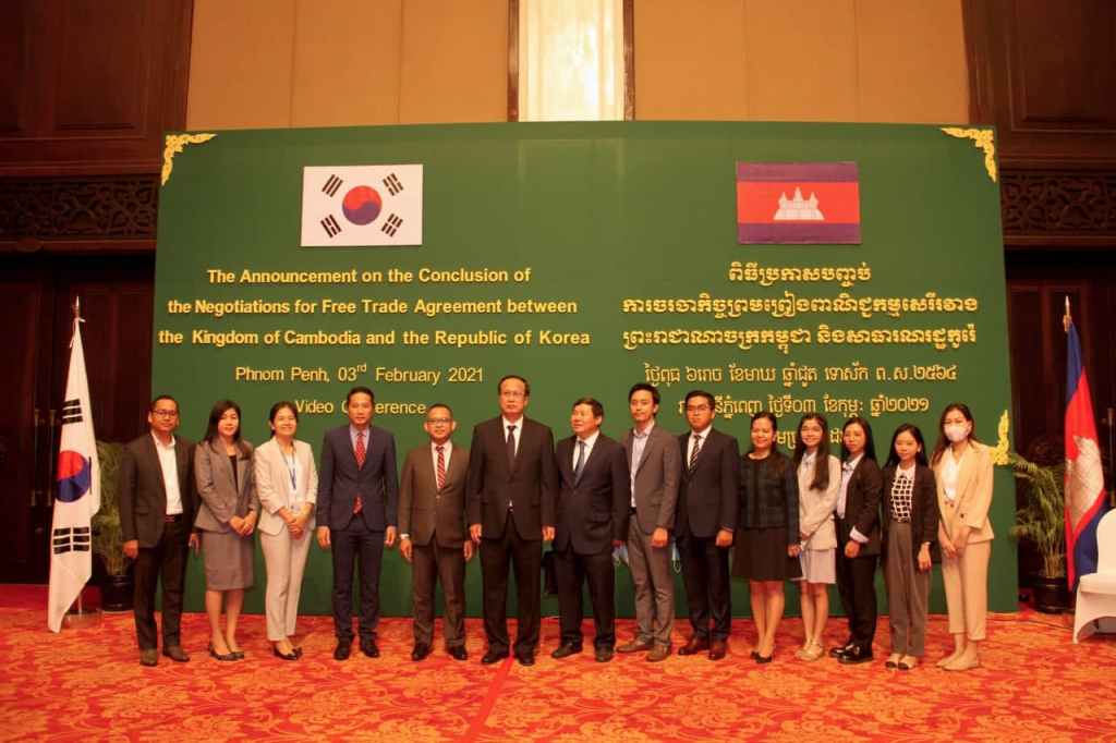 Commerce Ministers of Cambodia and Korea officially announced the conclusion of their bilateral FTA negotiations on 03 Feb 2021 via video conference. The two countries agreed to launch the feasibility study in Busan in November 2019, and started their first round of negotiation in July 2021.
